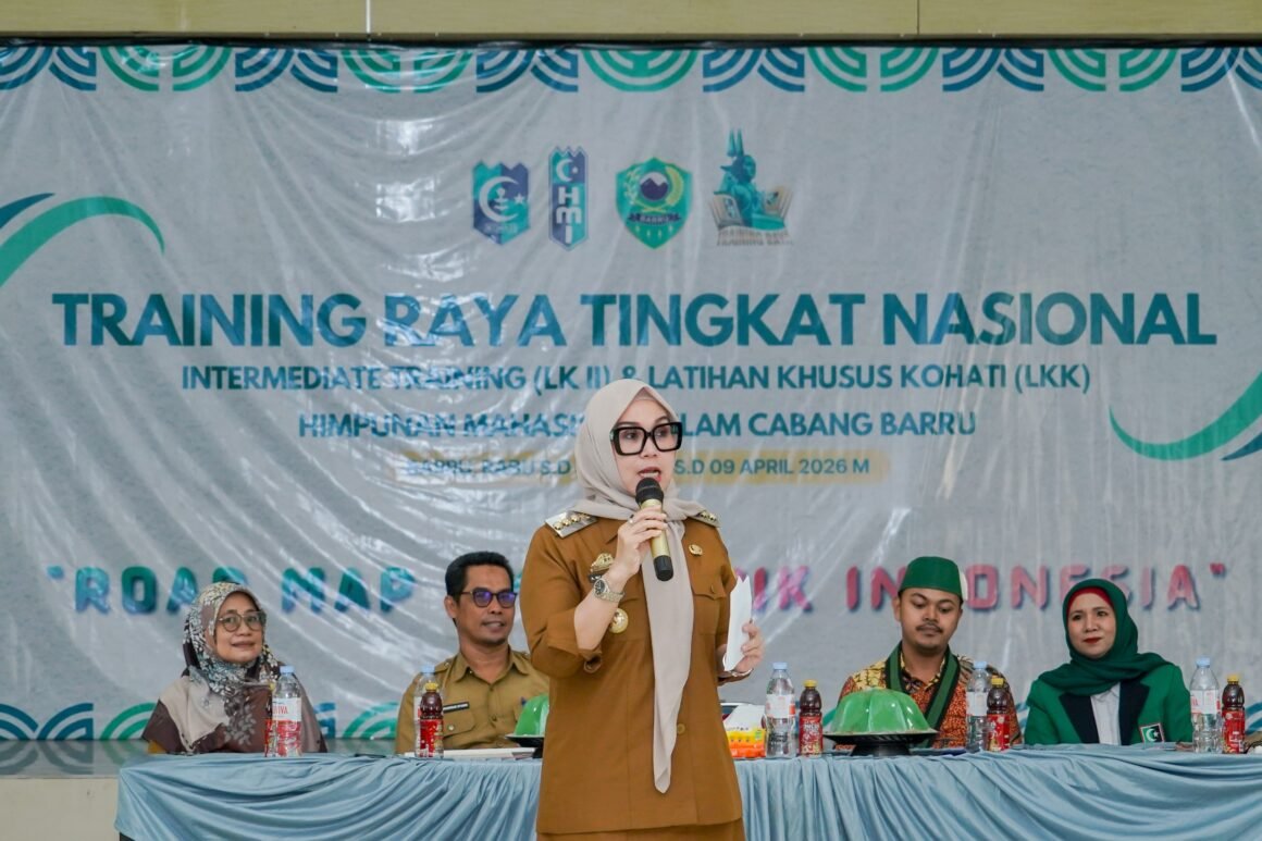 Barru, Petta – Bupati Barru, Andi Ina Kartika Sari, menekankan bahwa kepemimpinan sejati tidak boleh hanya terpaku pada zona nyaman di balik meja kekuasaan. Hal tersebut ia sampaikan saat menjadi narasumber dalam Training Raya Tingkat Nasional yang digelar Himpunan Mahasiswa Islam (HMI) Cabang Barru di Baruga Bola Soba’E, Selasa (7/4/2026).