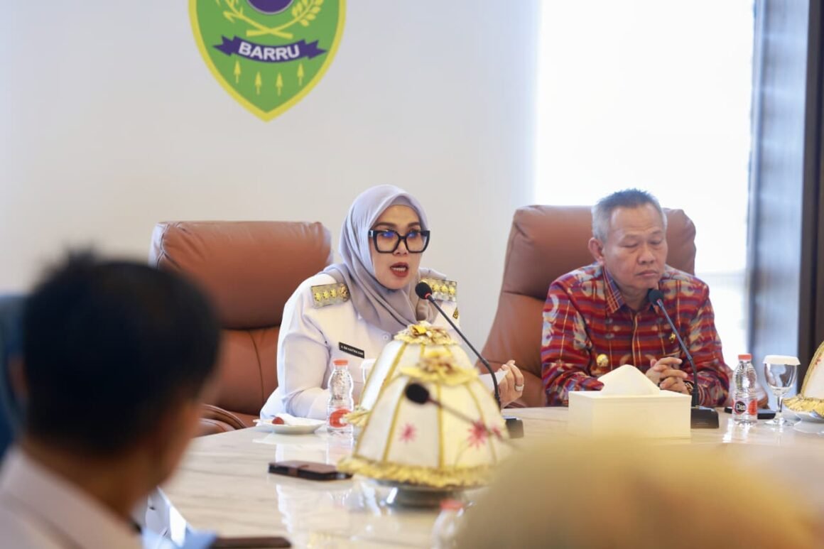 Bupati Barru, Andi Ina Kartika Sari, S.H., M.Si., didampingi Wakil Bupati Barru, Dr. Ir. Abustan Andi Bintang, M.Si., menyambut Pemerintah Kabupaten Sigi, Provinsi Sulawesi Tengah, yang melaksanakan kunjungan kerja studi tiru pengelolaan Badan Amil Zakat Nasional (BAZNAS) di Mal Pelayanan Publik (MPP) Lantai 5 Kabupaten Barru., Rabu (22/10/2025). (©Humas Barru)